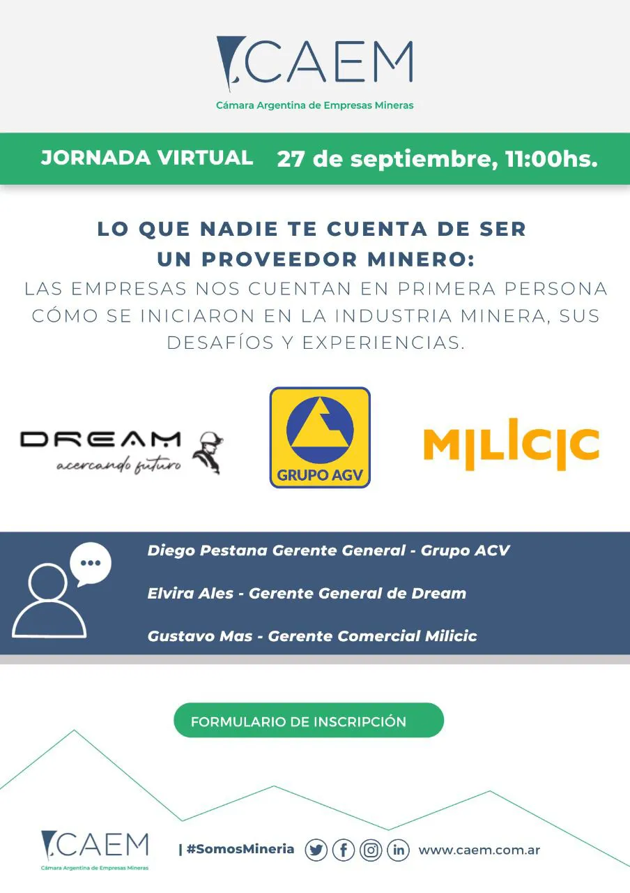 La Cámara Argentina de Empresas Mineras (CAEM) invita a los interesados en suministrar bienes y servicios al sectora a escuchar la experiencia de tres empresas proveedoras de reconocida trayectoria.