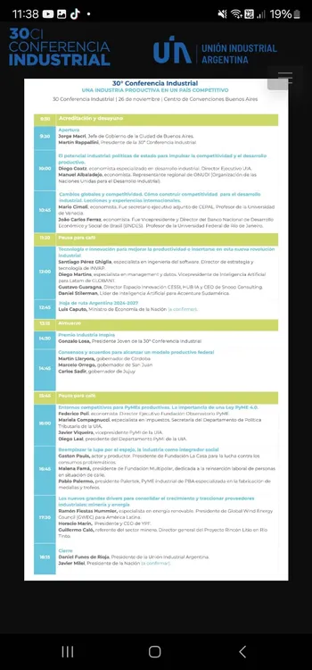 Alguien tiene que sacrificarse y poner cara de póker frente a las demandas de un RIGI ad hoc para la industria argentina o la pretendida Ley de Pymes que viene reclamando públicamente el líder anfitrión, Daniel Funes de Rioja, y de paso llevar el mensaje de sus jefes de cuánto progresó el país en este duro año desde el cambio de autoridades: el nominado es Juan Pazo, secretario de Coordinación de Producción del Ministerio de Economía y responsable de las políticas para las pequeñas y medianas empresas (pymes)