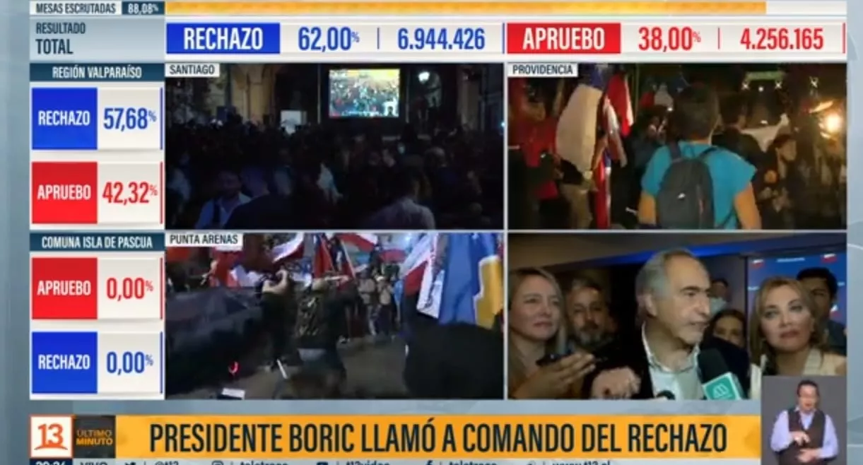 Por el otro, obviamente, al texto le han caído con todo los partidos tradicionales que capotaron a manos de "independientes" e izquierdas (83 escaños) en las elecciones constituynetes de mayo 2021. La fuerza de Piñera (39) y su oposición de democristianos y socialistas de Lagos y Bachelet (28) quedaron muy detrás del arco antisistema que quedó a sólo 4 votos de los 2/3. De ahí en más, el trajín ha sido arduo y repleto de impericias de los outsiders.