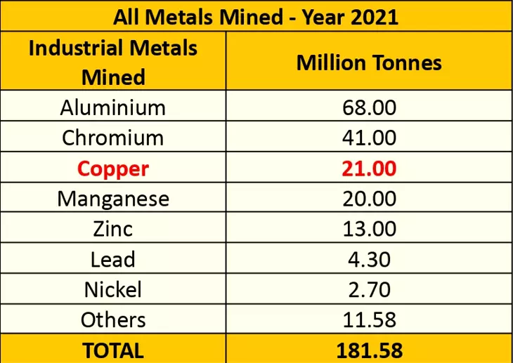 A continuación se destaca un desglose más amplio de los metales industriales extraídos en el año 2021: