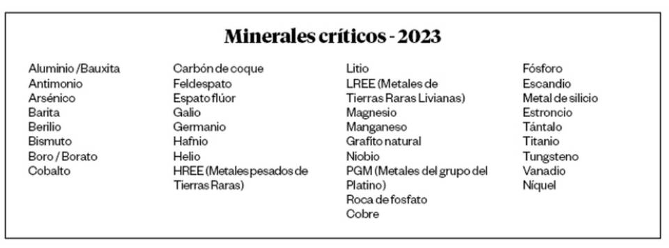 En línea con la anterior iniciativa de los 35 minerales básicos identificados como críticos en la lista del 2018 publicada en el Registro Federal de los Estados Unidos por el secretario del Interior, este país carece de producción interna de 14 y para 31 de ellos las importaciones superan el 50 por ciento. Esta dependencia pone en riesgo significativo las cadenas de suministro industriales, empresas y usuarios dentro del contexto actual geopolítico donde China es el principal productor.