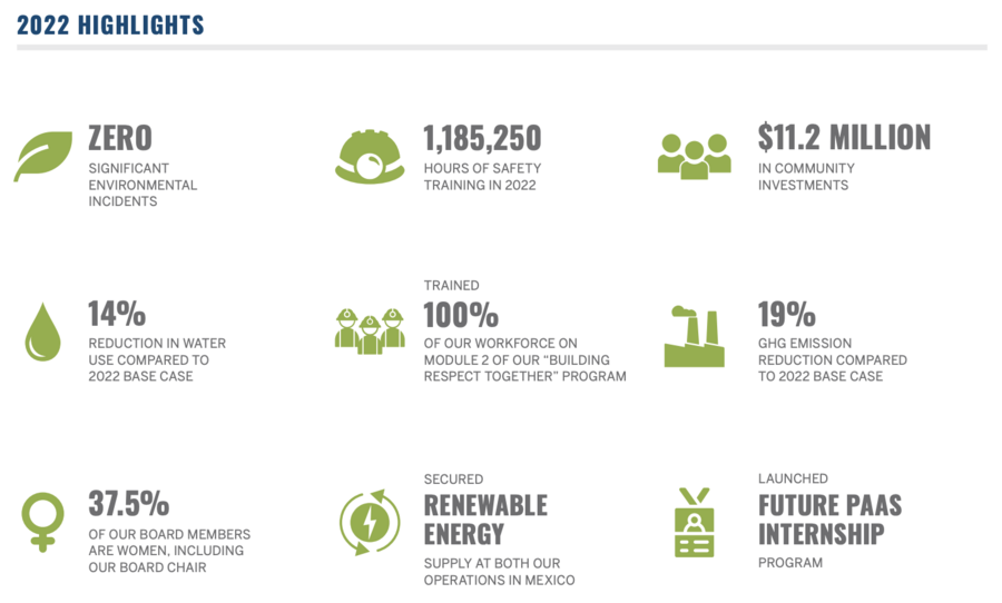 Pan American también dice que la adquisición de Yamana Gold Inc. en marzo de 2023 le permitirá aprovechar las mejores prácticas en lo que respecta a la sostenibilidad. El Informe de sostenibilidad de 2023, emitido en 2024, incorporará información sobre los activos de la adquisición de Yamana.