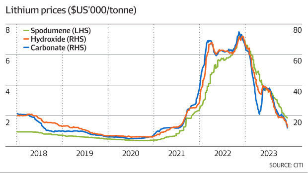 Según un análisis de Citi sobre los costos de producción y los precios de la espodumena realizado el mes pasado, la mina Mt Cattlin operada por Arcadium Lithium en WA está registrando pérdidas a los precios actuales. El análisis muestra que las minas Mt Marion y Bald Hill operadas por MinRes entrarían en la misma categoría.