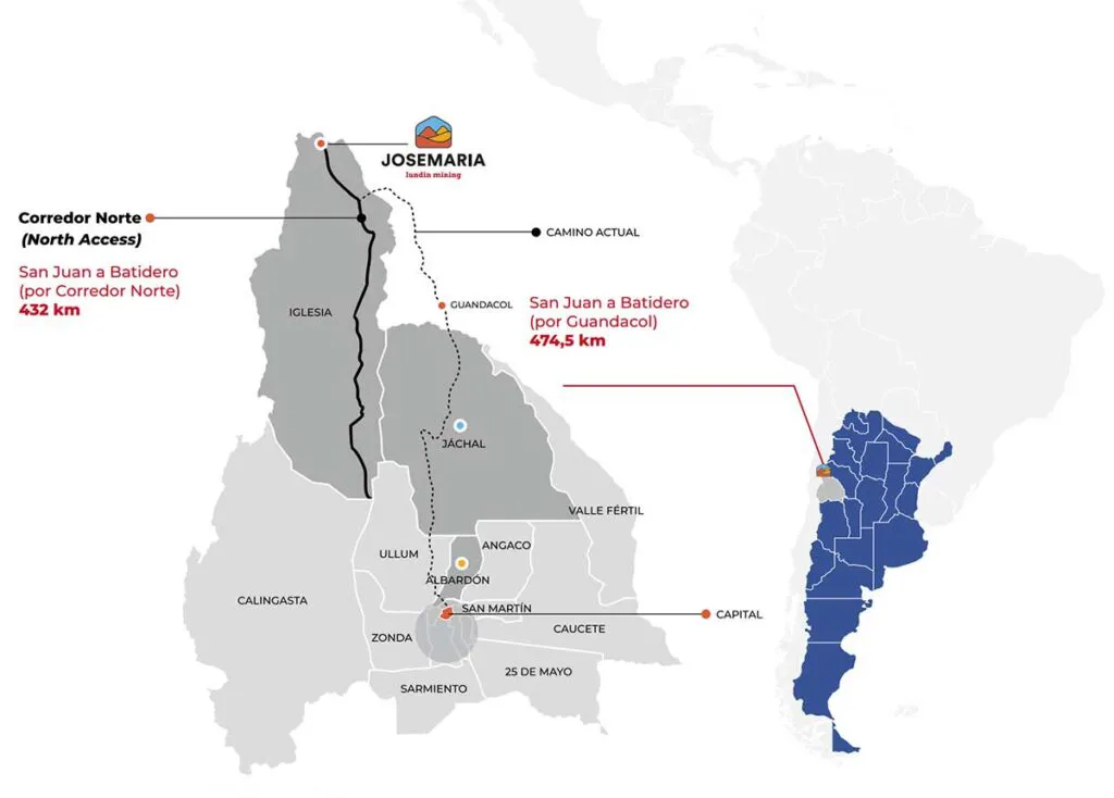 El acceso al proyecto está lejos de absolutamente todo. Josemaría se sitúa a 432 km de la ciudad de San Juan y 4.230 msnm, en el extremo Norte de la provincia y a unos 160 km de Guandacol, en La Rioja, donde termina el camino asfaltado. Nos tomó más de nueve horas en llegar al campamento.
